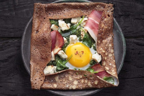Schinken - Käse - Ei / Spinat - Schafkäse / Hühnerfilet - Champignons „Fôrestière“ - Käse / Räucher-Lachsforelle - Zitrone - Dille - Crème fraîche / Camembert - Gebratene Rotwein-Äpfel - Preiselbeersauce / Berglinsen - Ratatouille-Gemüse - Räuchertofu * Humus - Getrocknete Tomaten - Avocado - Frühlingsalat * /Beliebig viele SÜSSE CRÊPES aus folgender Auswahl: